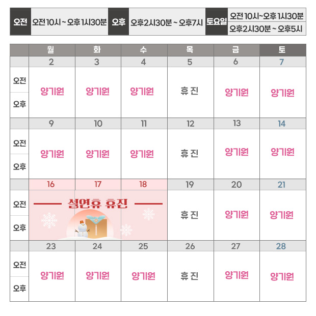 | 공휴일 | 오전9시 ~ 오후1시 |